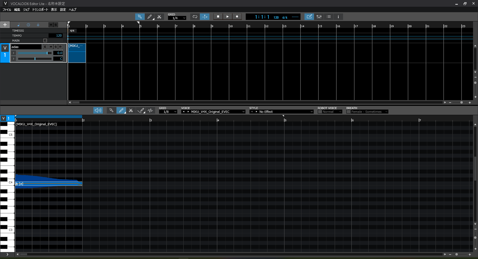 今回は、自身が所持している初音ミク V4Xの音声ライブラリを用いました。